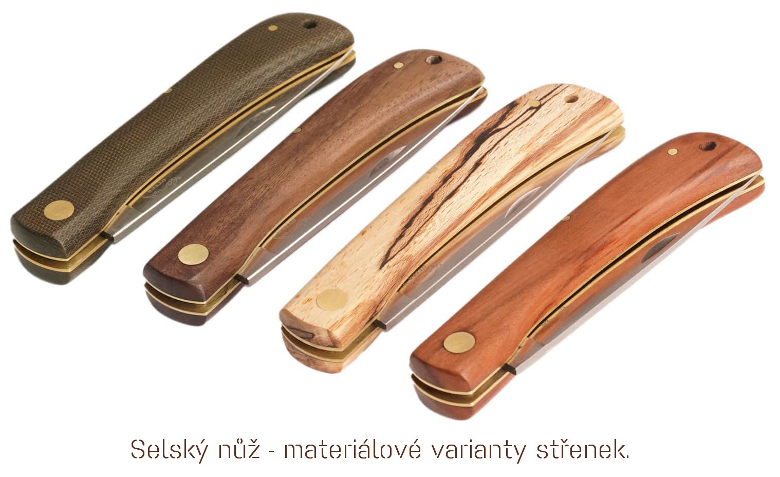 Geniálně jednoduchý, přitom robustní kapesní nůž. Tradiční selský nůž nebo také Ziegenmesser se v minulosti používal jako pracovní nástroj nejen v zemědělství. Nůž je vyrobený s velkým podílem ručního zpracování. Mosazné nýtování je u tohoto typu zarovnané s plochou střenek. Střenky jsou volitelně z ledového buku, ořechu, micarty nebo švestkového dřeva. Díky přírodnímu charakteru střenek je pak každý vyrobený nůž originálem. Dodaný nůž se proto bude od vyobrazení v eShopu odlišovat. Materiál čepele, uhlíková nožířská ocel C75. Nezpomeňte pak po každé práci čepel ošetřit olejem Ballistol, který je k dostání v našem eShopu. Selský nůž se vyrábí ve třech velikostech.